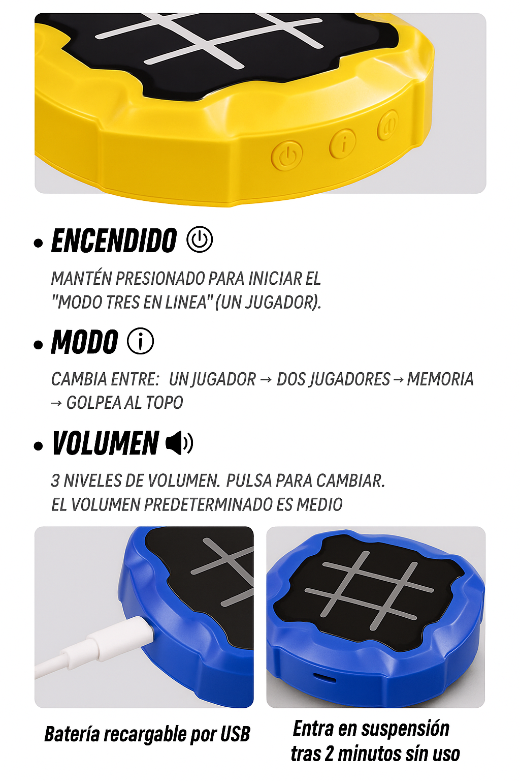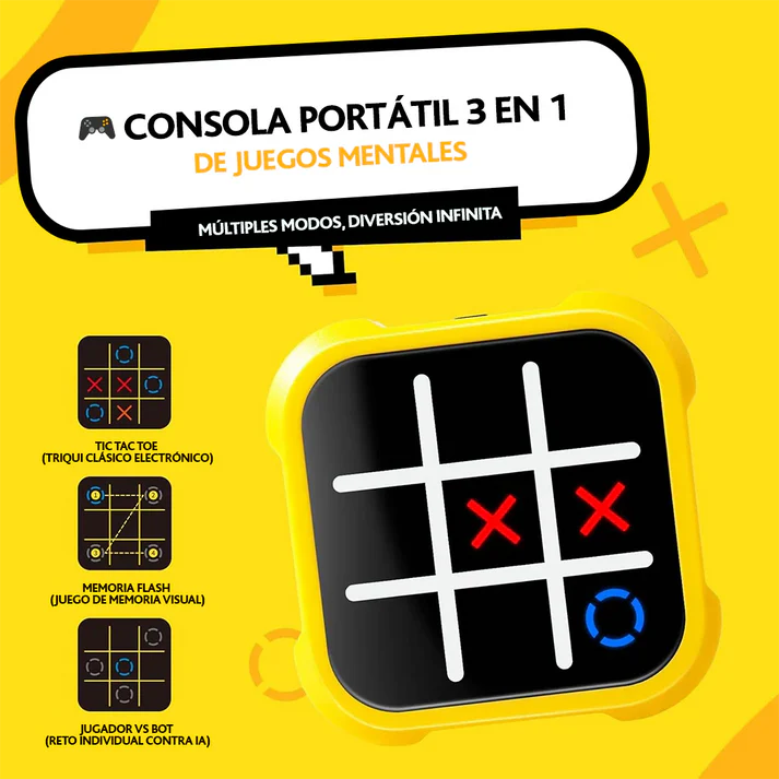 Ya no es solo cruzar y rellenar ❌⭕. Aquí cada jugada vibra con luces LED ✨ y efectos sonoros 🔊. Alterna entre Tic‑Tac‑Toe, desafíos de memoria 💡 y puzzles 🧩 en un solo dispositivo. Un verdadero entrenamiento mental portátil 🧠, perfecto para viajes ✈️, reuniones 🎉 o momentos en familia 👨👩👧👦.