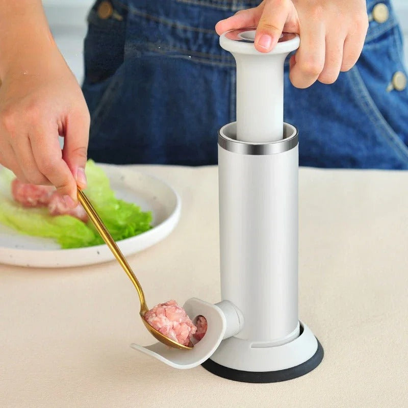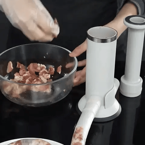 Disfruta una herramienta 2 en 1 que te permite hacer chorizos, albóndigas, rellenas y más en casa, fácil y rápido.